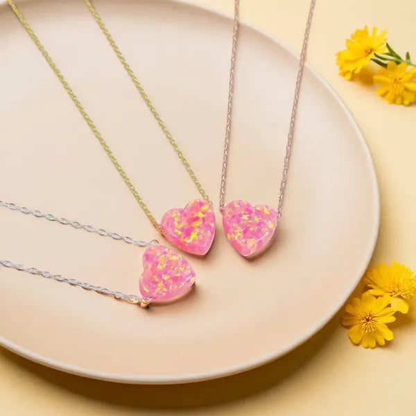 If your mom appreciates elegance with a sentimental touch, our heart-shaped synthetic opal pendants are a wonderful way to express your love. Set on sterling silver chains with luxurious gold plated and rose gold plated options, these radiant pieces add a touch of sophistication to any look.